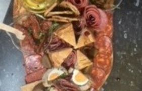 Served with a selection of cured meats of Spanish chorizo, salami, serrano ham and pork pie and a selection of biscuits, chutney, pickled red onion, honey and sundried tomatoes.